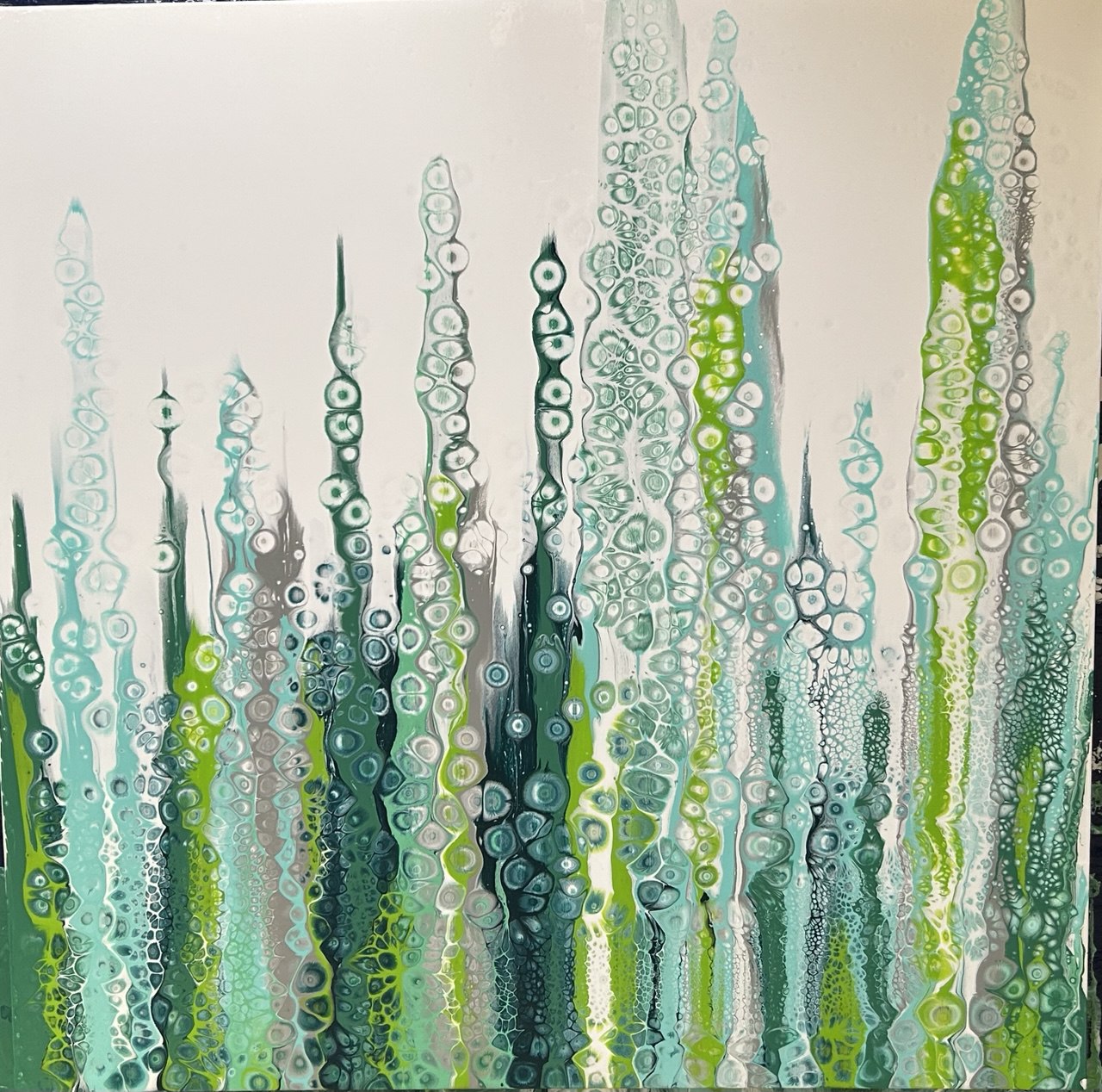 Mi pincel captura la magia de las formas celulares (el origen pulsante de la vida en plantas, animales y el cuerpo humano) transformándolas en abstracción celular orgánica fluida y vibrante.